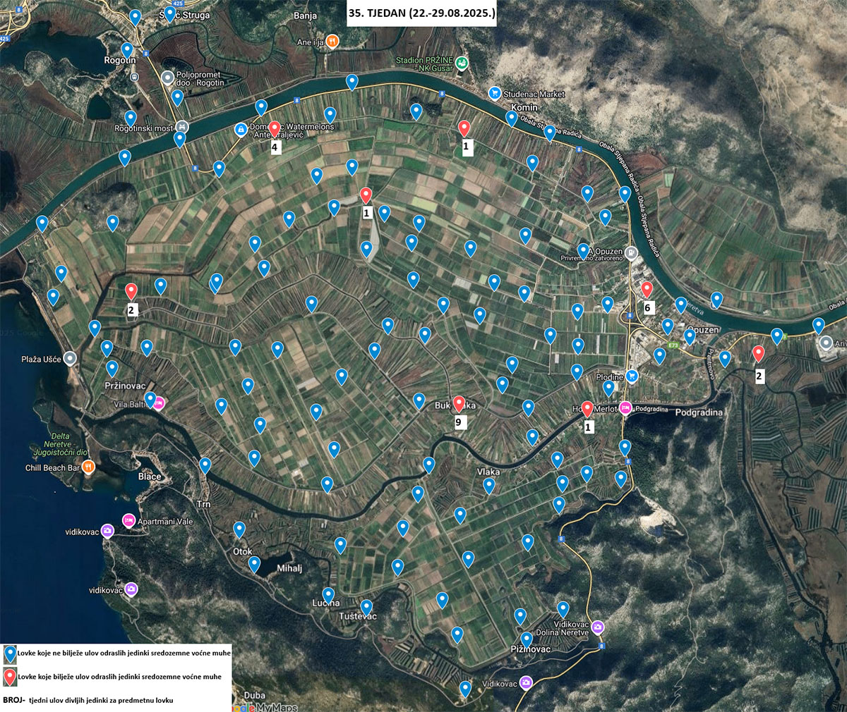 Radi lakše donošenja odluke o primjeni sredstva za zaštitu bilja, u prilogu se nalaze i karte kretanje populacije odraslih jedinki sredozemne voćne muhe po pojedinim područjima u Dolini Neretve.